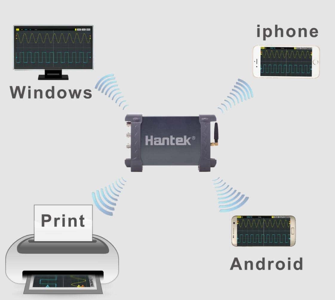 Hantek releases the first iPad WIFI oscilloscope - iDSO1070 Series in China officially on May 30th, 2016. It can support multi-touch operation, WIFI connection(or USB connection), WIFI Direct connection/via router, build-in lithium battery which can last over 4 hours no need of external power, floating measurement which is safe and convenient. It can connect iPad and Phone at the same time. When operating on iPad, it can also be observed on iPhone. Good mechanical design with small size which is convenient for traveling.