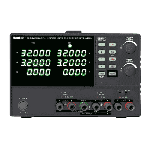The HDP3323 Multi-Output Programmable Linear DC Power Supplies are based on Hantek's long-standing expertise in power supply development and production. Digital panel control, large display, bright LED indicators, high output resolution, 4 setup memories, USB remote control, intelligent temperature control fan, and many other notable advantages. Simple operation, multiple panel settings, and high cost performance make this power supply the ideal choice for your purchase.