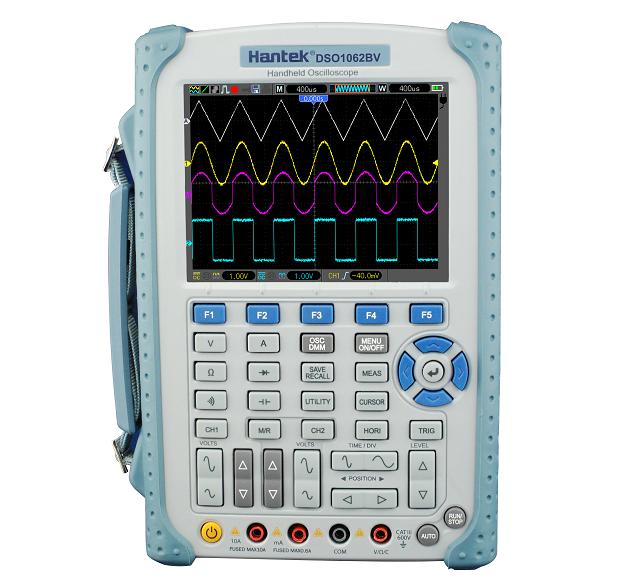 - 60MHz Oscilloscope, 1GS/s sample rate, and 6000 Counts DMM with analog bargraph.